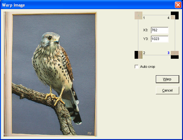 For the best results, only move the corners that need to be moved, and don’t move them further than necessary. Make a note of the new co-ordinates; if you decide to warp the original image again, this will easier if you can start by typing in the co-ordinates that you entered last time.