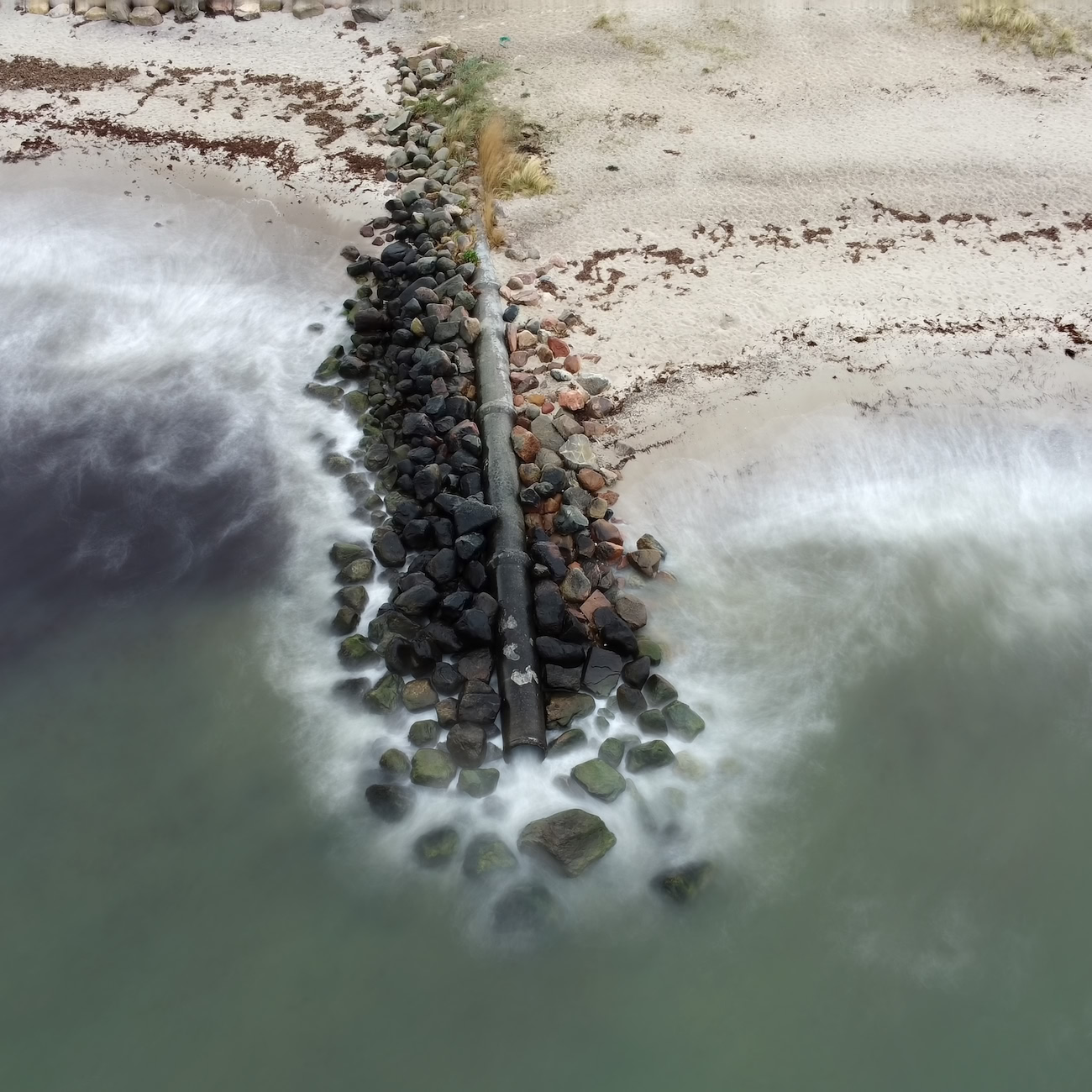 Long exposure image generated by combing an average and a max frame from a stabilized (enable Register frames in the Video transform dialog) 10 sec drone video recording. The two images were tonemapped using the Local contrast, brightness and colors feature, saved to jpg and then combined by using Generate Max frame.