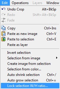Now your selections will be locked into the ratio you select. Make your selection with the Rectangle Selection Tool and then crop the image by pressing Alt+C or by going to Operations/Size & orientation/Crop on the menu bar.